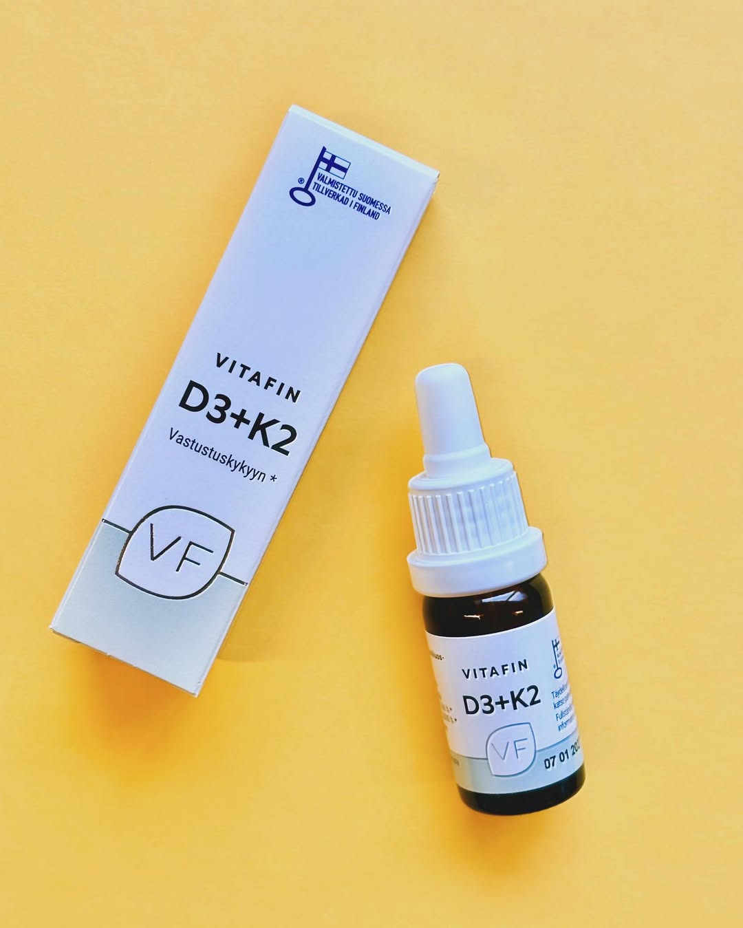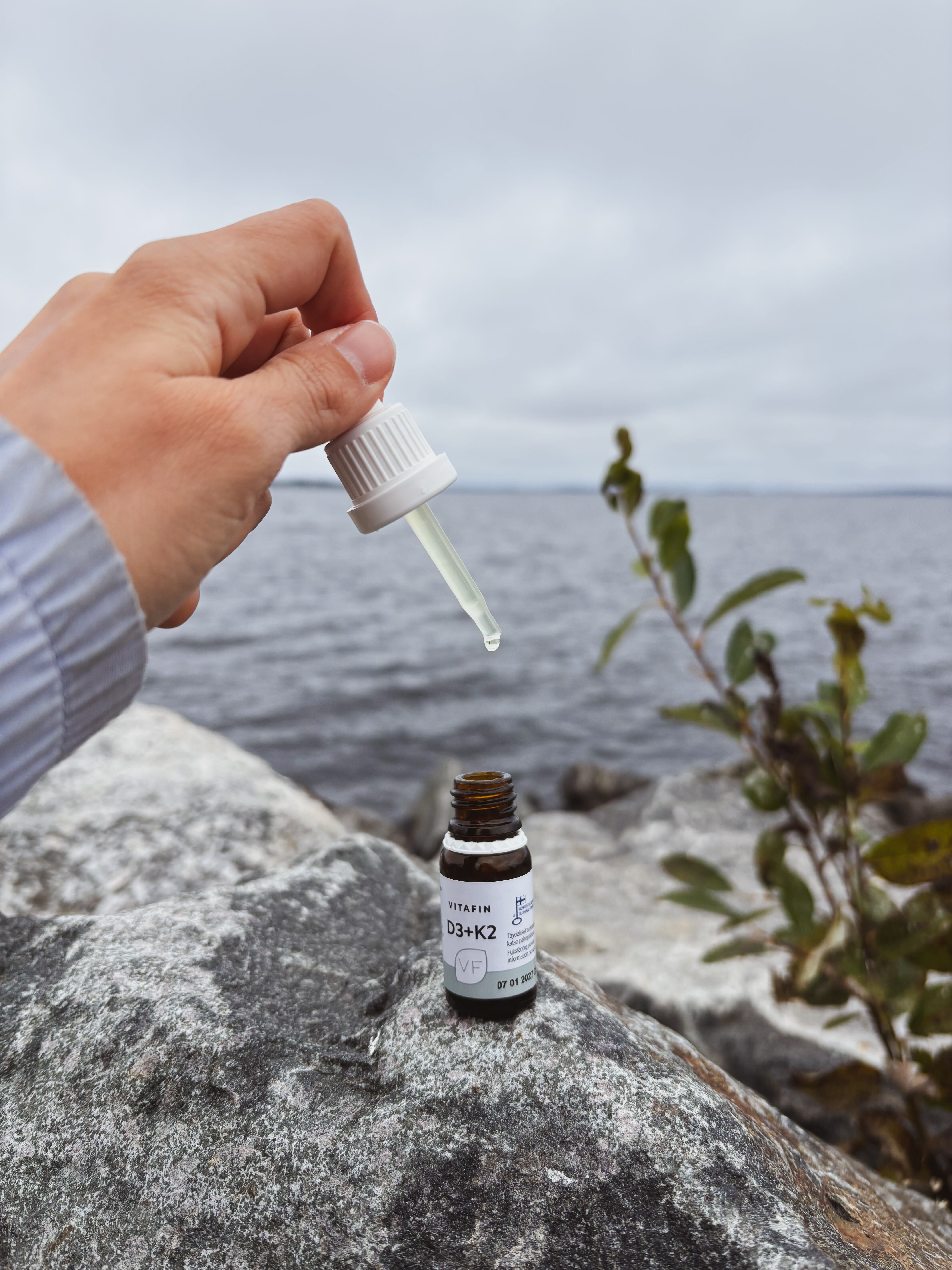 D3+K2 on päivittäiseen käyttöön tarkoitettu nestemäinen uutuus, joka on helppo annostella pipetin avulla. Tuote on kehitetty tukemaan luuston ja immuunijärjestelmän hyvinvointia.